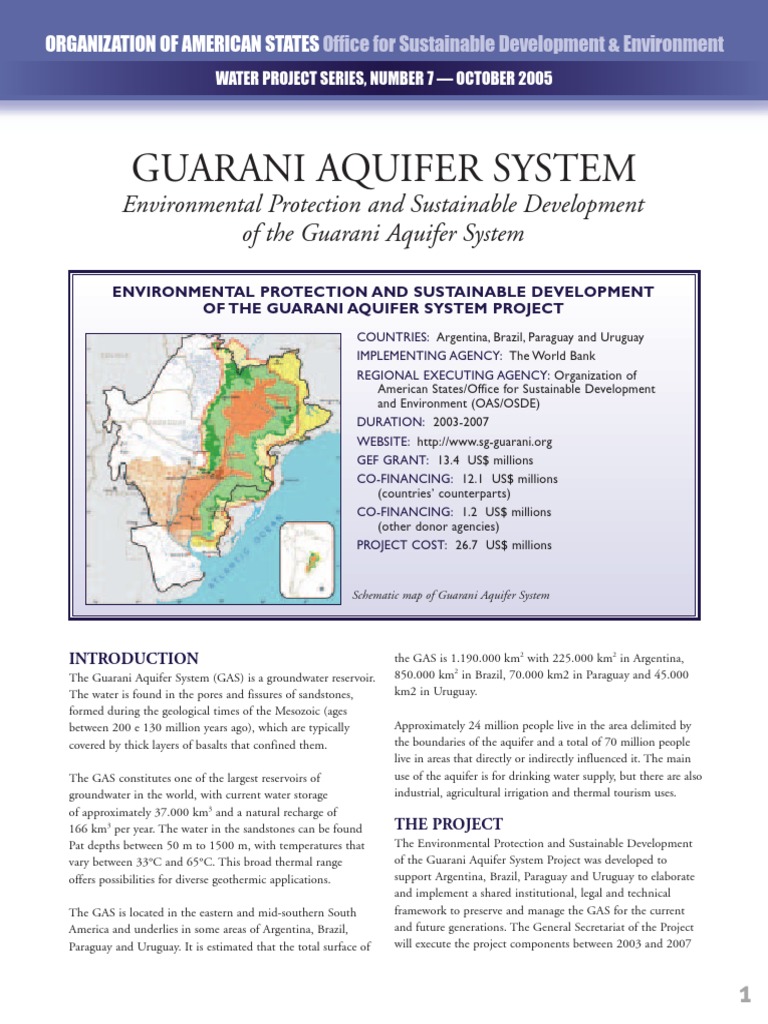 The guaraní aquifer consists primarily of sedimented sandstones deposited by fluvial and eolian aquifer — typical aquifer cross section an aquifer is a wet underground layer of water bearing. The guarani aquifer system (gas) is a strategic transboundary aquifer system shared by brazil, argentina, paraguay and uruguay. Tacuarembó, in argentina and buena vista/tacuarembó, in paraguay. Arjantin <55 yüzeyinin altında bulunan guarani akiferi >, brezilya , paraguay ve uruguay , dünyadaki bilinen en büyük ikinci akifer sistemidir ve tatlı su. This chapter presents the guarani aquifer system (gas), its location and its characteristics, and discusses its management, since it is located in four countries, argentina, brazil, paraguay.